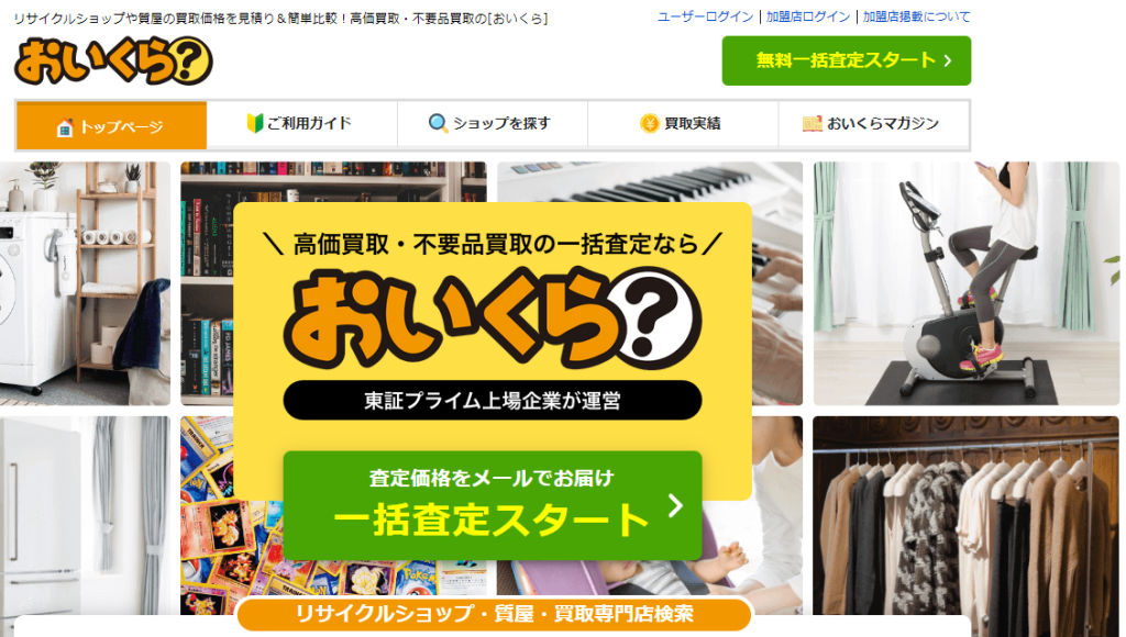 おいくらは全国のリサイクルショップや買取店に一括査定を依頼できる比較サイトで、利用者は品物情報を一度入力するだけで複数業者から見積もりを受け取れます。