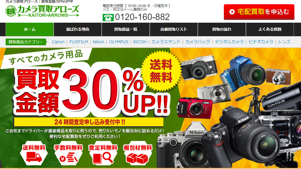 | カメラ買取アローズ | 無料 | 無料 | 利用者負担 | 業界最高クラスの査定スピード |