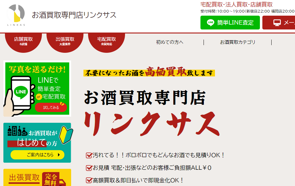 実店舗を持たず、WEB特化型の運営によりコストを徹底排除したお酒買取専門店です。
